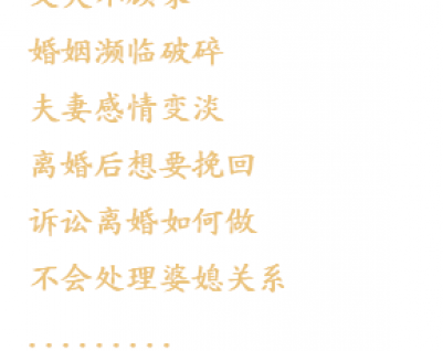 眾夢尋緣可以幫你解決任何情感問題,無論你是想要離婚但是不知道該怎么做(離婚咨詢);還是夫妻感情平淡(感情變淡);還是挽回丈夫或者妻子(婚姻挽回);亦或是不知道如何和家人相處(婆媳關(guān)系)等等。我們都有相應(yīng)的情感導(dǎo)師,幫你解決你在婚姻中的情感問題,為你的婚姻指明方向。