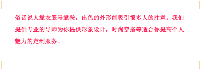 形象設計一般分為兩大板塊:展示面設計和形象設計。 展示面是創(chuàng)建吸引力最為關鍵的環(huán)節(jié),也就是我們所講的朋友圈,針對性的展示去吸引對方的關注是非常重要的。社交軟件的興起讓展示面也成為了一門學問。一個優(yōu)秀的個人展示面代表著對方更容易和你產(chǎn)生互動;代表著更高的成功率;代表著對方更容易被你所吸引。其實如何定義優(yōu)秀這個詞很簡單,通俗點講,那就是對方第一眼看到你的展示面,就覺得你這個人很屌,更愿意和你產(chǎn)生互動。 形象設計幫助你重新設計你的外部形象,讓對方無論在任何時候看到你都是充滿吸引力的,將根據(jù)面相風水學幫助你搭配適合你的妝容,根據(jù)社交行為學搭配你適合不同場所和不同季節(jié)的服裝。